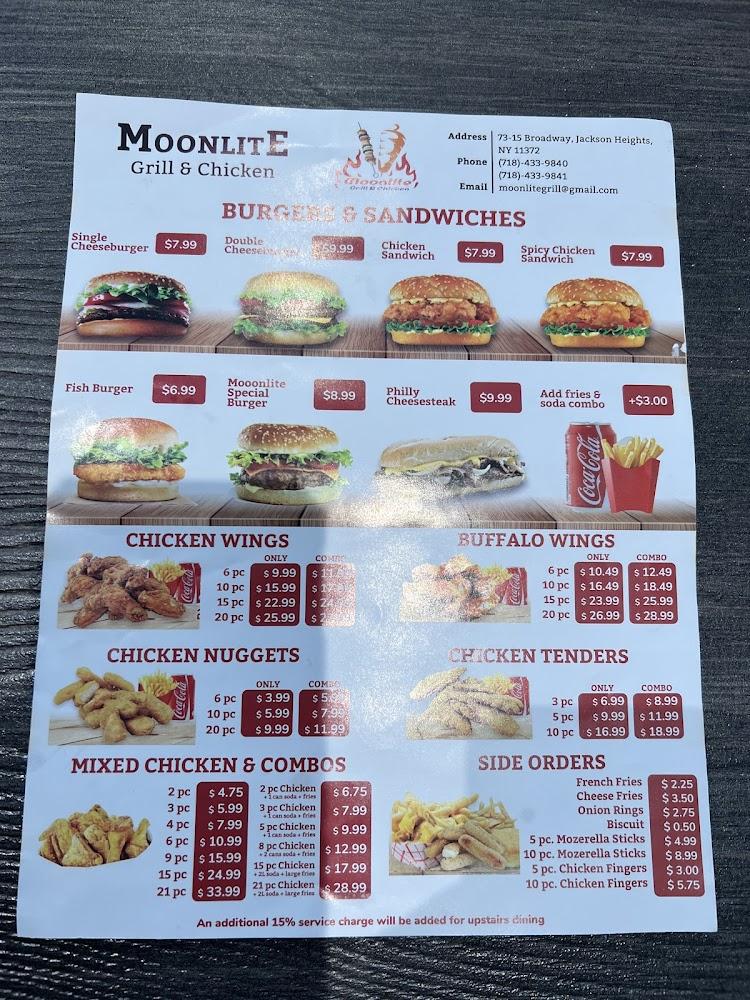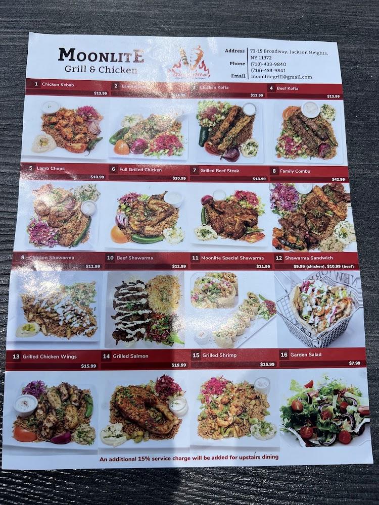 Welcome to Moonlite Grill & Chicken, your go-to Middle Eastern restaurant located in the vibrant Jackson Heights, Queens. At 73-15 Broadway, we serve up a delightful menu filled with simple and traditional dishes, including our famous kebabs, shawarma, and delectable shareable plates. Enjoy a relaxed atmosphere perfect for solo diners or family outings, with options for lunch, dinner, and dessert. We offer convenient services such as delivery, takeout, and dine-in, along with a kid-friendly menu and amenities like gender-neutral restrooms. Come savor the flavors of halal cuisine at affordable prices between $10-$20. Join us for an unforgettable meal!